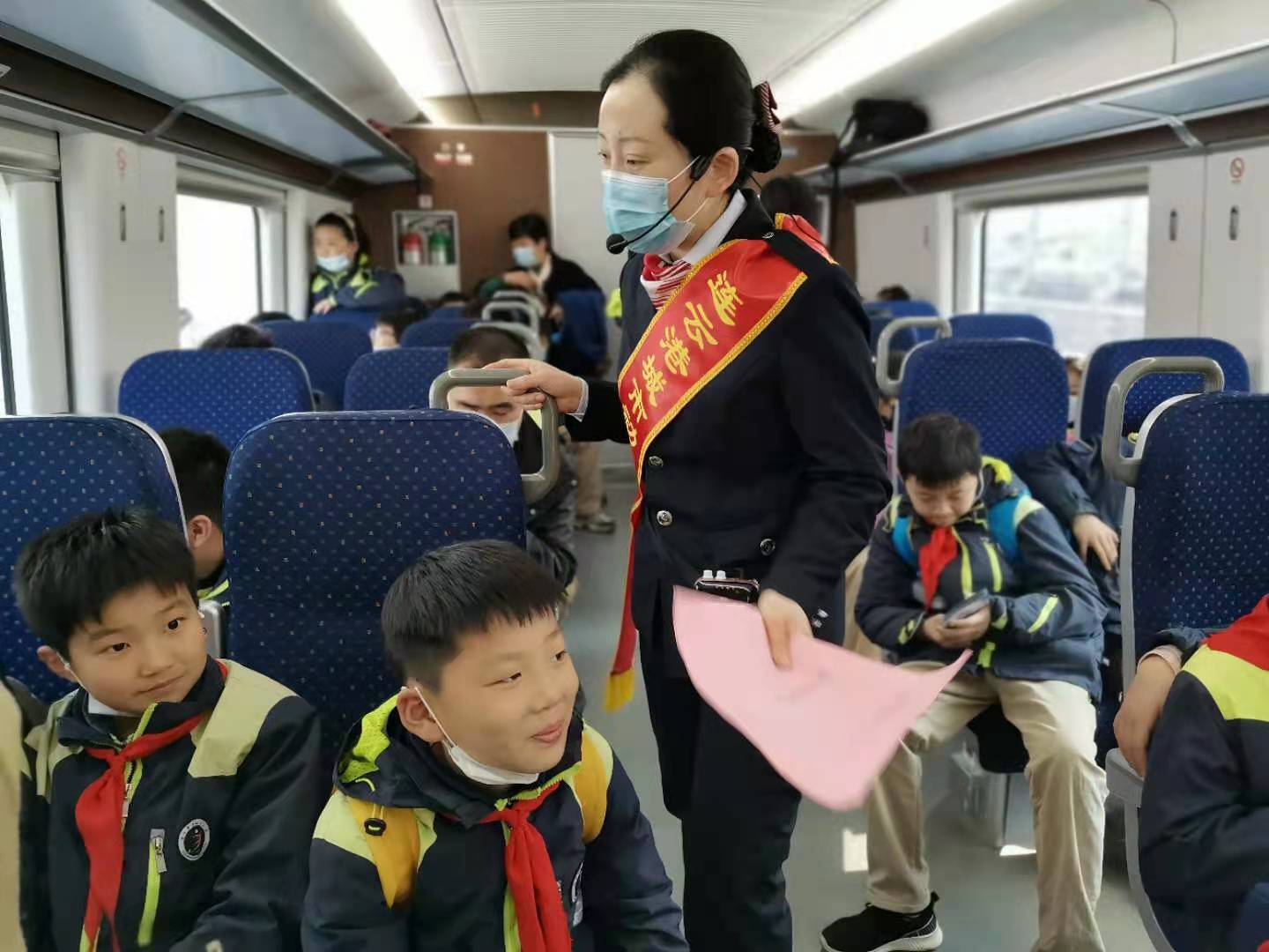 4月9日早晨,墟溝小學的師生們整裝待發,來到城市動車墟溝站,體驗城市動車舒適快捷。城市動車站務員們熱情接待了他們,站務員給同學們介紹了墟溝站的概況,尤其是墟溝站的頂棚設計采用起伏多變的波浪造型,它象征著“星辰大海”,體現港城特色的海洋文化。同學們在月臺等候列車時,看見列車駛入站臺,同學們沸騰了,大聲說到:“美猴王踏著祥云向我們飛來了。”在車上,站務員們為同學們講解了城市動車的概況、乘車禁止攜帶的危險品及高鐵、動車、普速列車的區別。高鐵是以G開頭的車次,動車是以D開頭的車次;高鐵時速是在300公里以上,動車時速是在200公里以上;高鐵使用的是專用鐵軌,動車使用的既可以是高鐵專用鐵軌,也可以是經過改裝的普通鐵軌;高鐵可以稱作專線,設置的站臺很少,動車全線設置,站臺較多;動拖比不同,高鐵屬于強動力分散型,動車屬于弱動力分散型;動車比普速列車速度快是因為動力不同,動車是無牽引力軌道車輛,裝配有驅動車輪;而普速列車是由一至三節機車牽引若干車廂或車皮組成。同學們聽完講解,熱情高漲,并與站務員相互交流。在不知不覺中,列車已經到達了終點站連云站。墟溝小學張校長講,通過這次活動不僅讓同學們感受到了城市動車的舒適快捷,也豐富了同學們的課外知識,并為你們熱情服務和業務素養點贊。