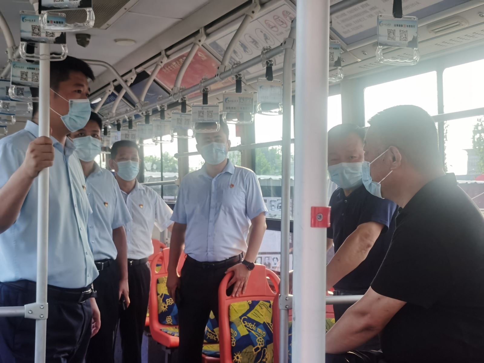 調(diào)研中,張海組長一行來到公交集團(tuán)財校場站進(jìn)行實地了解和查看,首先聽取王學(xué)兵對公交廉潔文化建設(shè)工作開展情況和今后工作思路的介紹,接著參觀了公交15路、19路廉政文化示范車及“中共黨史文化墻”。示范車以“山海廉韻·與廉同行”為主題,車身外運用連云港山與海的結(jié)合,寓意廉潔文化建設(shè)如同山一樣厚重、海一樣廣闊,彰顯港城廉政建設(shè)的獨有特點。車廂內(nèi)主要利用多媒體設(shè)備、拉手、看板、座椅等,多方位多角度的展現(xiàn)警句格言、廉政漫畫、本地清官故事等人文和廉潔元素,讓廉潔文化建設(shè)走進(jìn)市民乘客身邊,推進(jìn)新時代黨風(fēng)廉政建設(shè)和廉潔文化建設(shè)工作,張海組長對公交集團(tuán)廉潔文化建設(shè)工作給予了肯定。