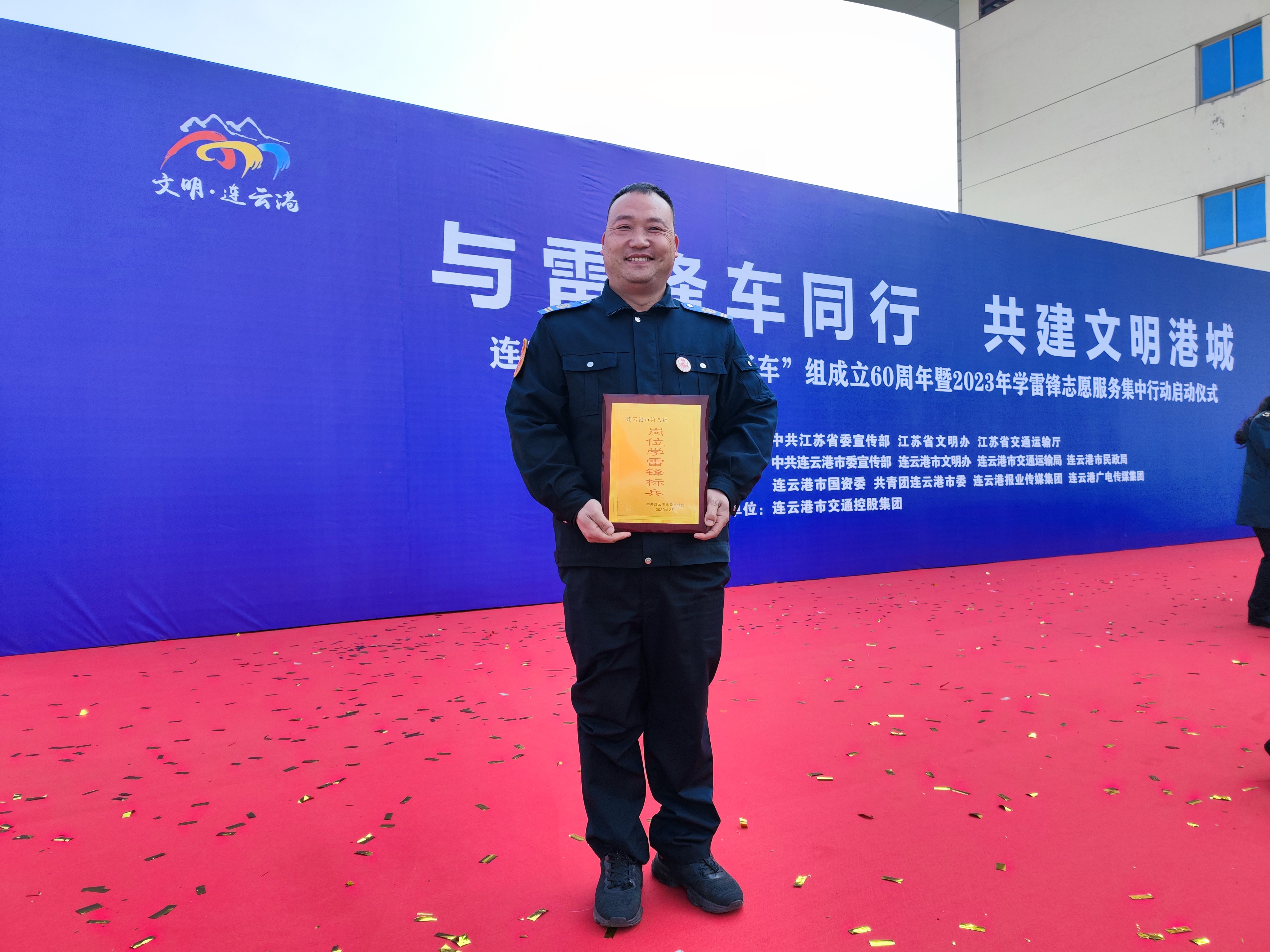 3月1日,連云港市舉辦的“與雷鋒車同行、共建文明港城”活動中,公交集團快速公交事業部B12線駕駛員龐洪剛被授予連云港市第八批“崗位學雷鋒標兵”稱號。