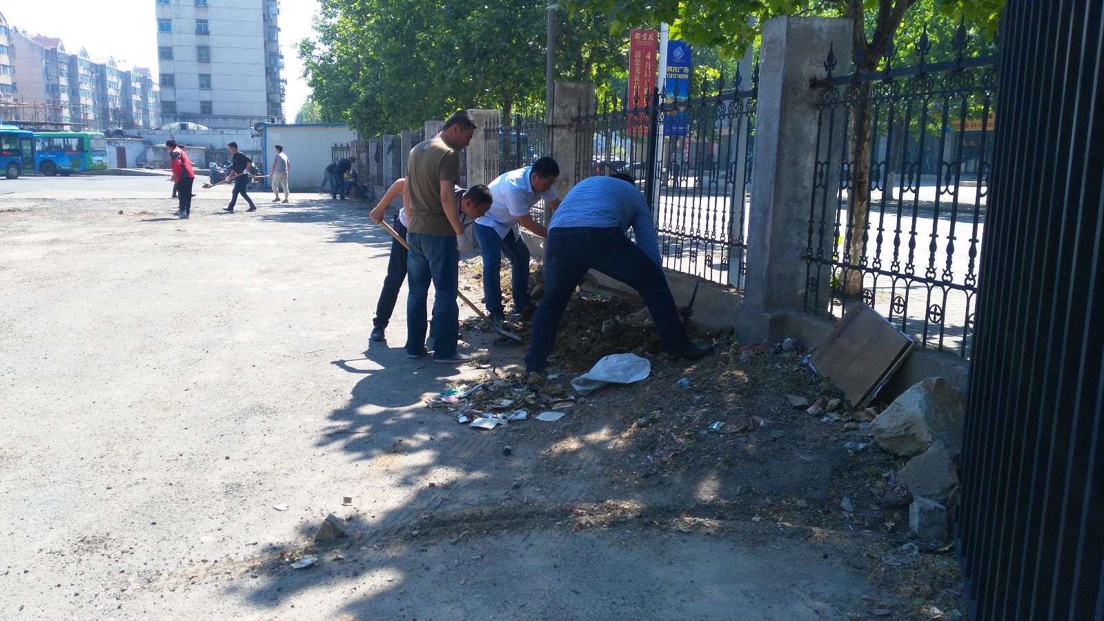 活動中,大家不顧“臟和累”,積極將場站四周堆放的泥土、沙石中的垃圾清除,又將泥土和沙石填置到場站的低洼水坑中,同時將場站內各種垃圾進行撿拾和衛生死角進行徹底清理。