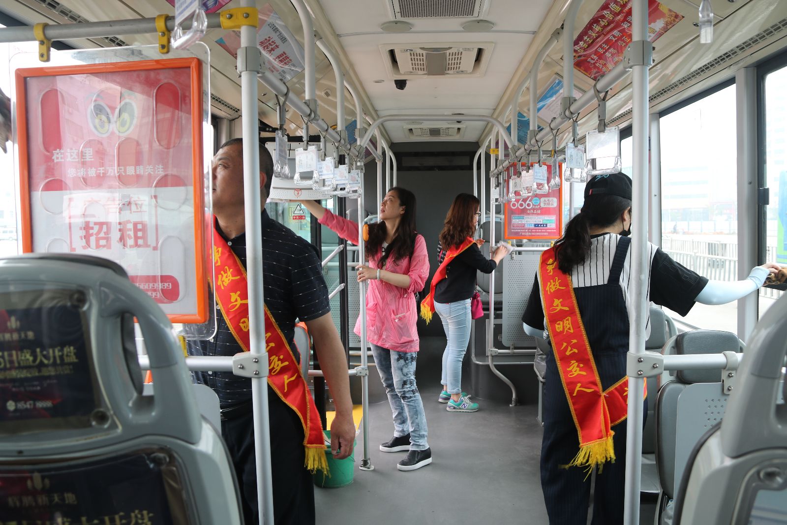 根據“與雷鋒車同行,共創文明公交”活動方案部署,5月31日上午,公司黨群部組織機關部室工作人員,分成四組到火車站、新華公交總站、香溢公交總站和西門等四個公交首末站點,對進站車輛車廂衛生一趟一掃一抹。參加活動的機關管理人員,逐一打掃進站車輛車廂衛生,擦洗座位、窗裙、玻璃和扶手,為乘客乘車出行提供良好的乘車環境。