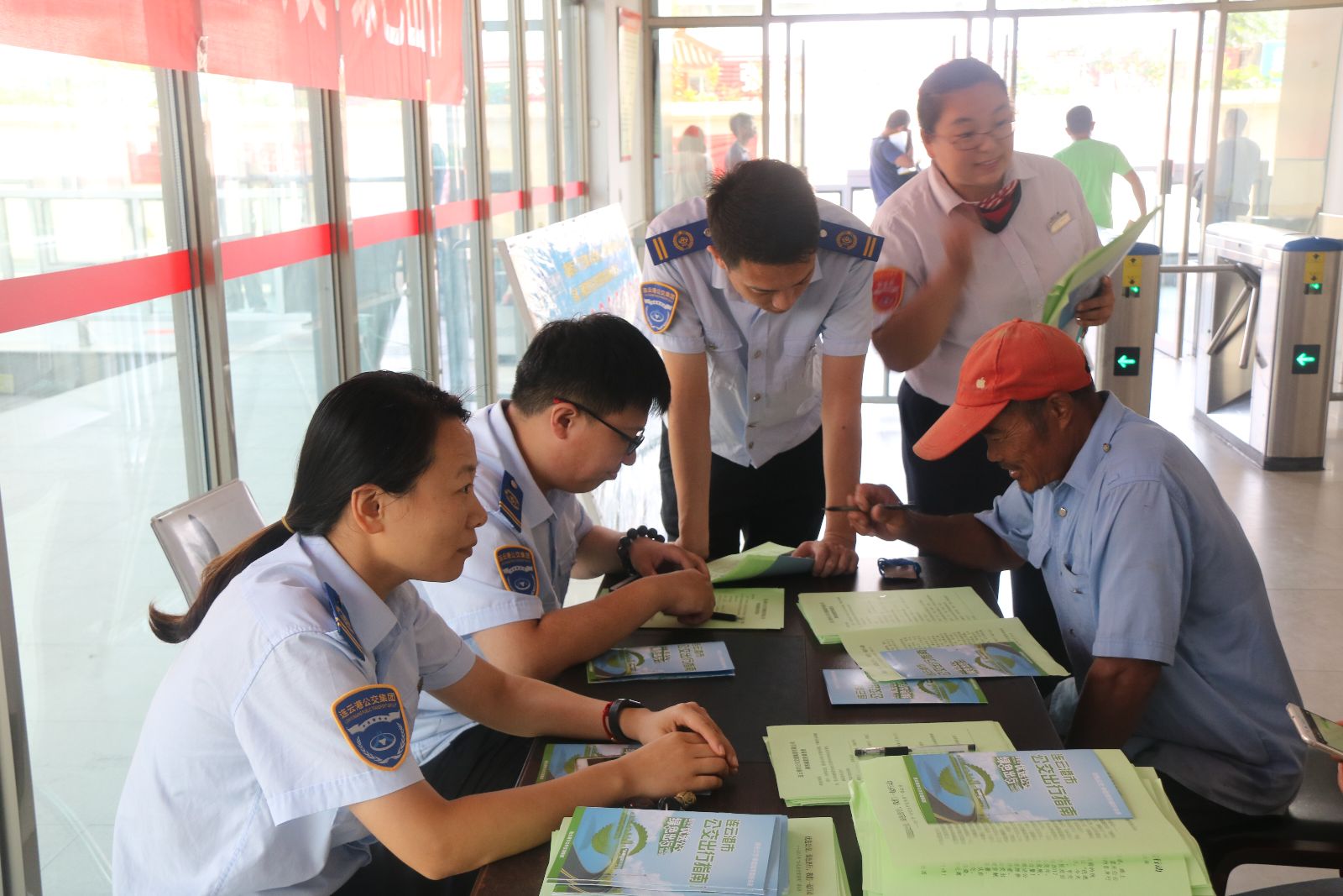 9月24日上午,根據(jù)2017年“公交出行宣傳周”主題活動的安排,公交集團組織開展了公交出行宣傳周集中宣傳活動,在海州客運站、購物中心南、師專、萬達廣場四處主要客流集散地設立宣傳咨詢點,每個宣傳點均懸掛橫幅,安排至少4名工作人員現(xiàn)場向市民群眾發(fā)放“公交出行宣傳周”宣傳冊、連云港市公交出行指南,宣傳公交“一卡通”政策、掌上公交APP、“掃碼乘車”等實施智能公交信息化服務措施,同時以調(diào)查問卷的方式與市民進行互動,征求市民建議和意見,引導社會群眾支持和參與城市公共交通發(fā)展。