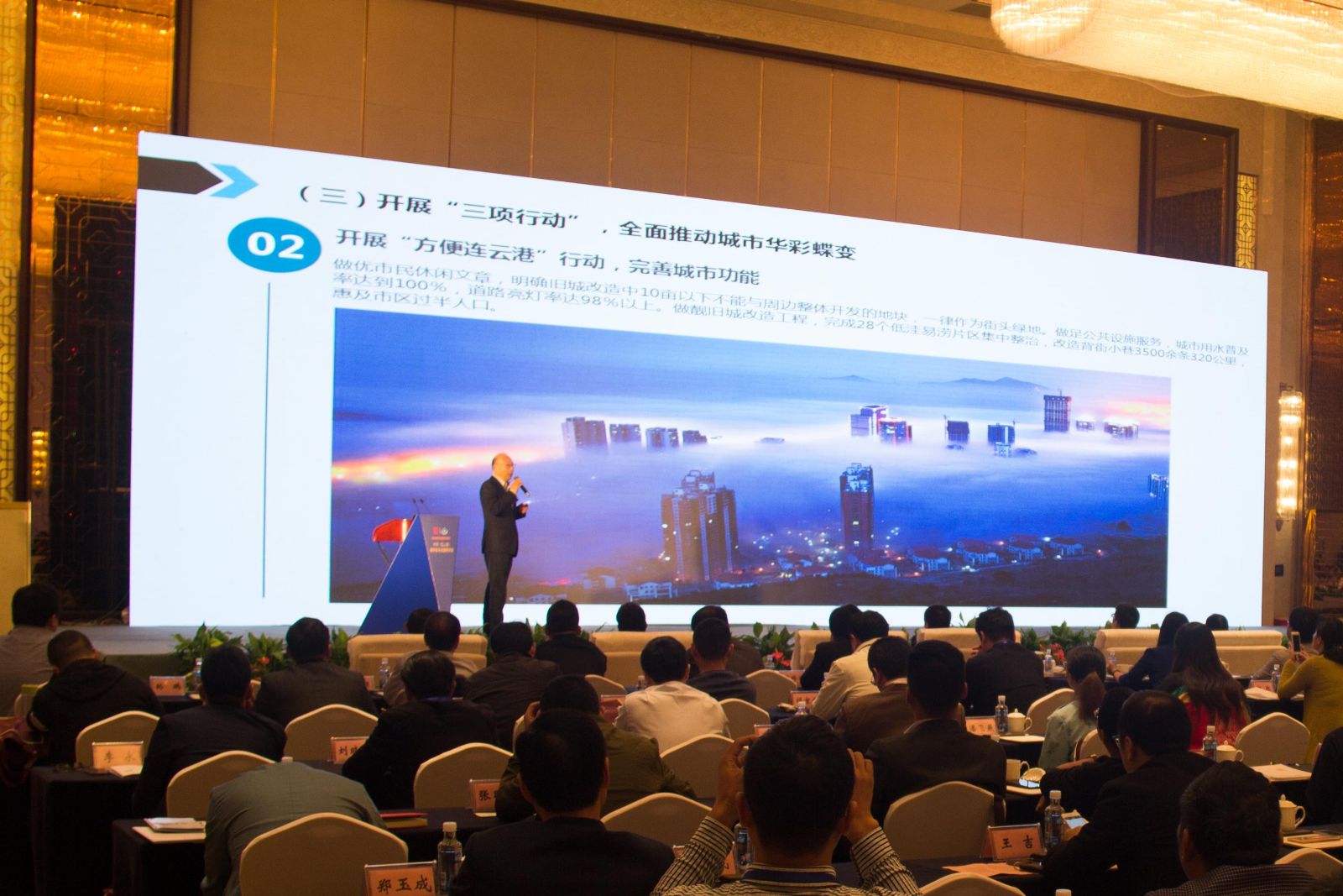 市城建控股集團董事長、黨委書記周文軍用ppt形式為參會人員詳細介紹了企業及有關產業實施的情況。