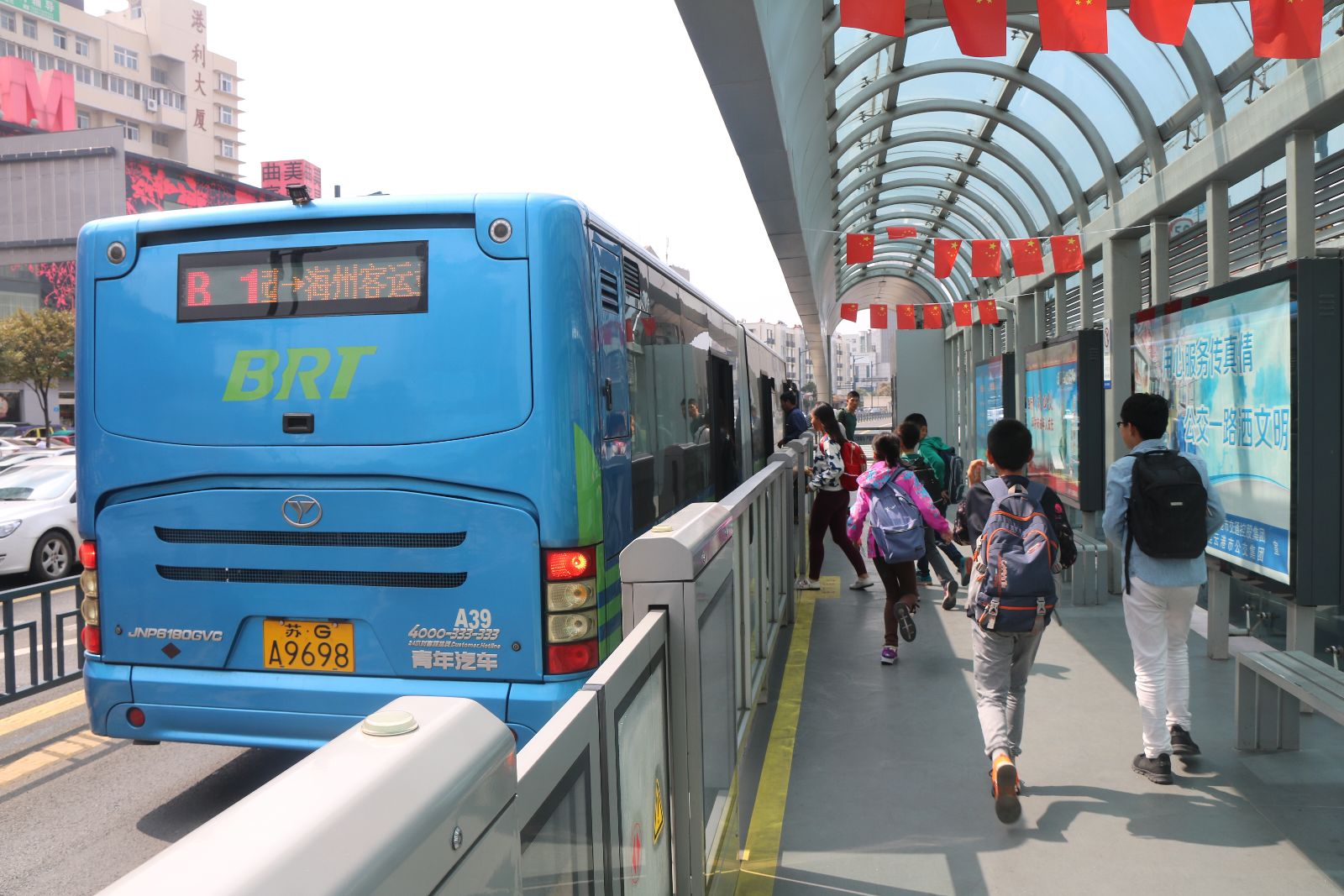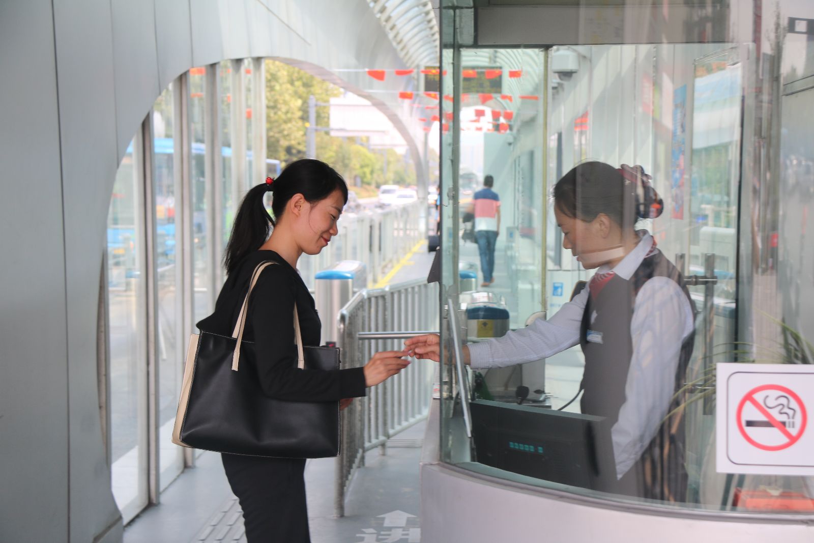 上下班高峰時段,每天BRT站臺上都密密麻麻站滿了焦急候車的乘客。每當一輛輛公交車進站時,車門打開的瞬間,下車的乘客們從后門依次走出,上車的乘客按順序依次從前門進車,老人兒童有人攙扶,年輕人禮讓老年人,這是我每天都能看到的一幕。