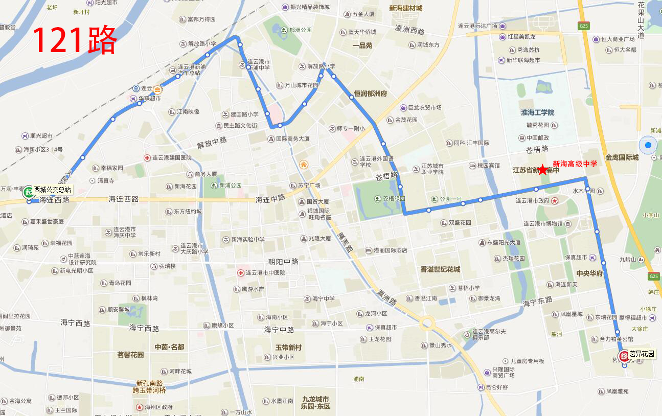 新海高級中學(xué):地址在海州區(qū)蒼梧東路58號,附近途徑公交線路有3路、5路、10路、15路、24路、51路、121路、游2路;