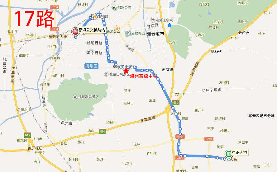 海州高級中學(xué):地址在海州開發(fā)區(qū)青圃路1號,附近途徑公交線路有17路、20路、游1路;
