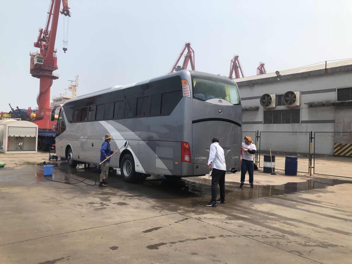 臺風過后,港口地表溫度達50多度,公交集團汽服公司因承接了宇通近100臺車輛的出口清洗檢驗任務,面對任務重、時間緊、標準高的出口要求,為了能按時保質完成此項任務,公交汽服的港口工作人員頂著高溫,穿戴整齊,服從指揮,按部就班的執行清洗檢驗工作,盡管汗珠浸濕了衣背,高溫天氣并不影響工作人員的工作熱情和工作態度。公司維修部的人員也在抓緊時間,緊鑼密鼓搶修出現問題的公交車輛,汗水濕透了他們的衣裳,雖然辛苦,但看到公交車又能為乘客的出行提供便利,他們的心里別提有多開心了。