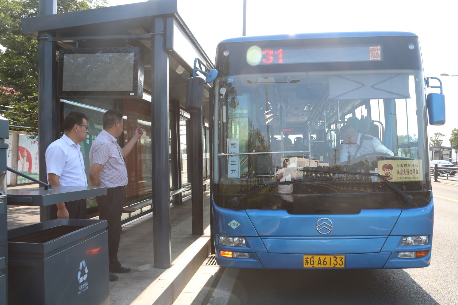 為確保創(chuàng)文工作順利開展,7月10日,公交集團(tuán)黨委書記、總經(jīng)理周文君及領(lǐng)導(dǎo)班子成員上路上線對(duì)海州客運(yùn)站、連云古鎮(zhèn)等線路開展創(chuàng)文檢查工作,檢查內(nèi)容包括:場(chǎng)站衛(wèi)生、車容車貌、車內(nèi)安全設(shè)施完善情況、文明宣傳標(biāo)識(shí)張貼是否到位、站臺(tái)衛(wèi)生、駕駛員服務(wù)規(guī)范等。