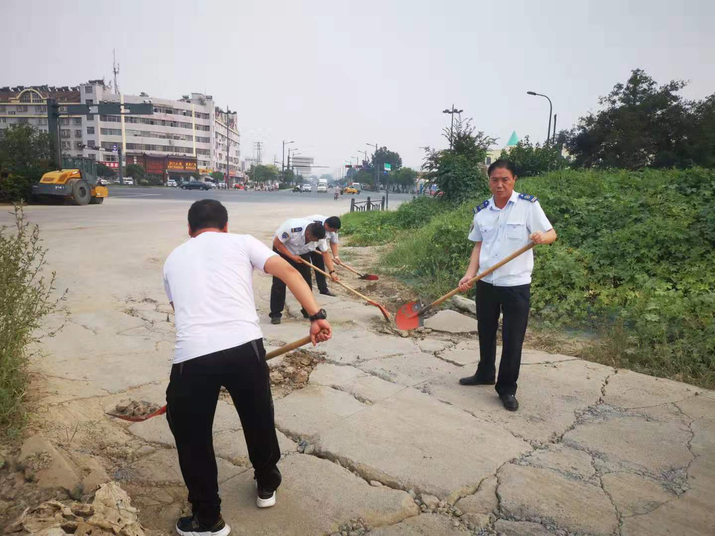8月21日,公交集團經營發展事業部組織管理人員義務對江化路公交場站破損地面進行修復、硬化。