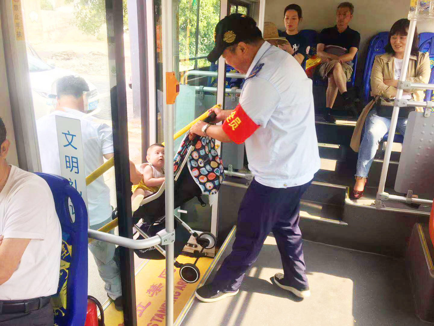 為緩解客流壓力,公交集團對22路、B12線、6路、游2路等客流量多的19條重點線路,在上下班的高峰期時段,派駐安全員進車廂,協助駕駛員查堵易燃易爆、有毒、管制道具等危險物品、引導乘客有序上車投幣刷卡,扶老攜幼,幫助老年乘客安全乘車、督促駕駛員安全行車、文明駕駛。一旦發生意外情況,積極協助駕駛員做好應急處置措施,維護乘客的人身安全。